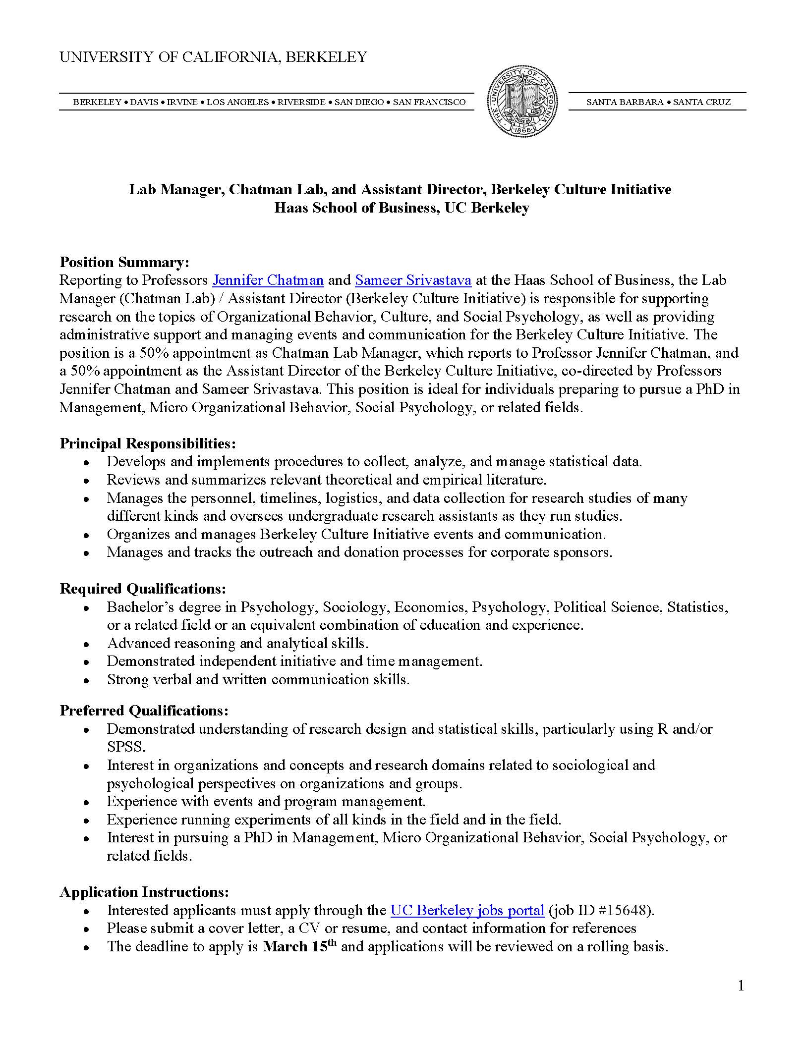 Unc Psych Neuro On Twitter Uc Berkeley Berkeley Culture Initiative Is Hiring A Ft Research Analyst Amp Lab Manager Asst Director Both Will Work W Research On Organizational Culture Organizational Behavior And